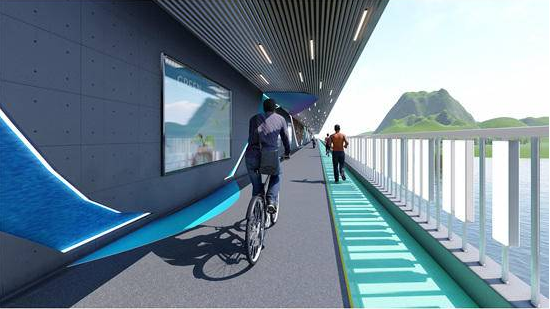 工程师介绍,正常桥梁一般呈拱形,越往抛物线顶部截面越薄,这种设计在施工中有较大的调整余地。而这次打造的桥梁为了提高行人的舒适度,设计成“等截面”,这可以让行人少爬4.5米的坡,节省人力。这一设计还相应降低了桥梁造价,节约了土地资源。但全新的设计方案给桥梁施工带来极大挑战,工程采用的截面悬浇施工、双层翼缘板结构、二次张拉低回缩钢绞线竖向预应力体系施工等是该桥施工亮点,其施工技术工艺和质量控制措施在行业中处于领先水平。