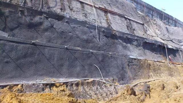 注意事项:周边条件允许情况下,尽量坡度放大,软土地区放坡尽量增加坡脚反压,做好降水、截水、泄水措施。一般情况可用铁丝网代替钢筋网,用石粉代替砂、石喷砼护面。