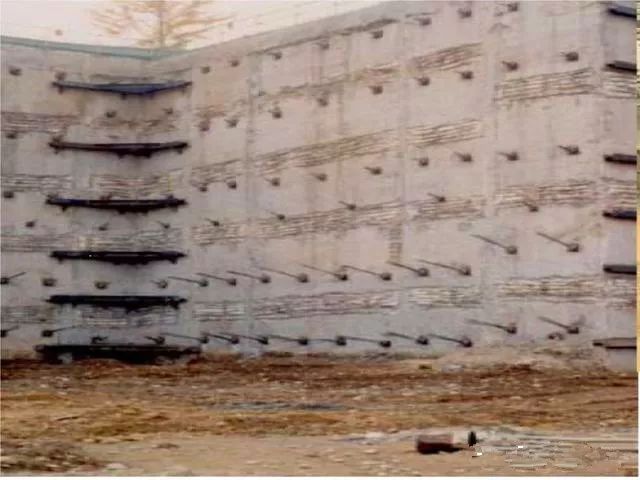 注意事项:对于周边临近建筑物或道路等对变形控制较严格区段或较深的基坑,需增加预应力锚杆或锚索,称之为加强型土钉墙,因施加预应力较小,可设置简易腰梁。