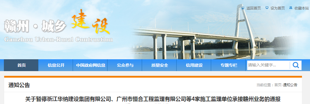 广州市恒合工程监理有限公司等4家施工监理单位承接赣州业务的通报