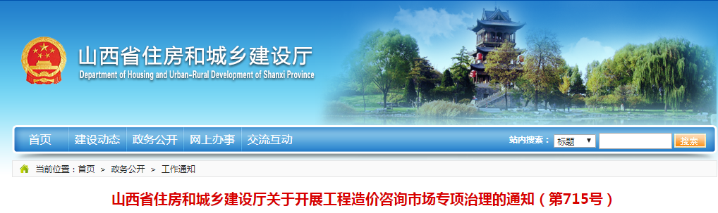 山西省住房和城乡建设厅关于开展工程造价咨询市场专项治理的通知(第715号)