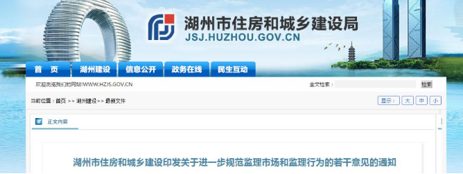 3月6日,湖州市住建局发布《关于进一步规范监理市场和监理行为的若干意见的通知》,主要内容如下:
