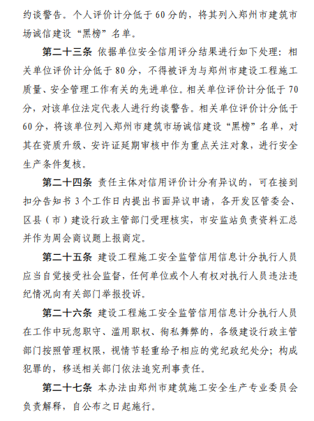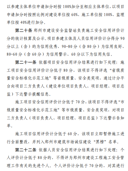 郑州:施工项目信用评价低于60分,立即暂停施工进行全面整改,并列入“黑榜”名单