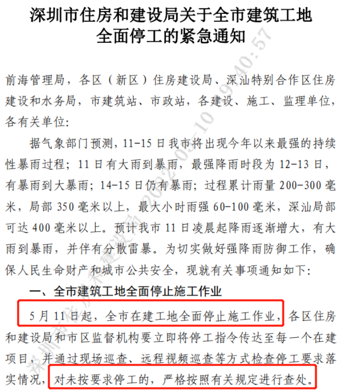 昨日,深圳市发布了关于全市建筑工地全面停工的紧急通知。