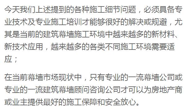 建筑幕墙的施工中存在很多细节的问题,如果不加以注意,会造成材料的浪费和返工,严重的还会埋下安全隐患。